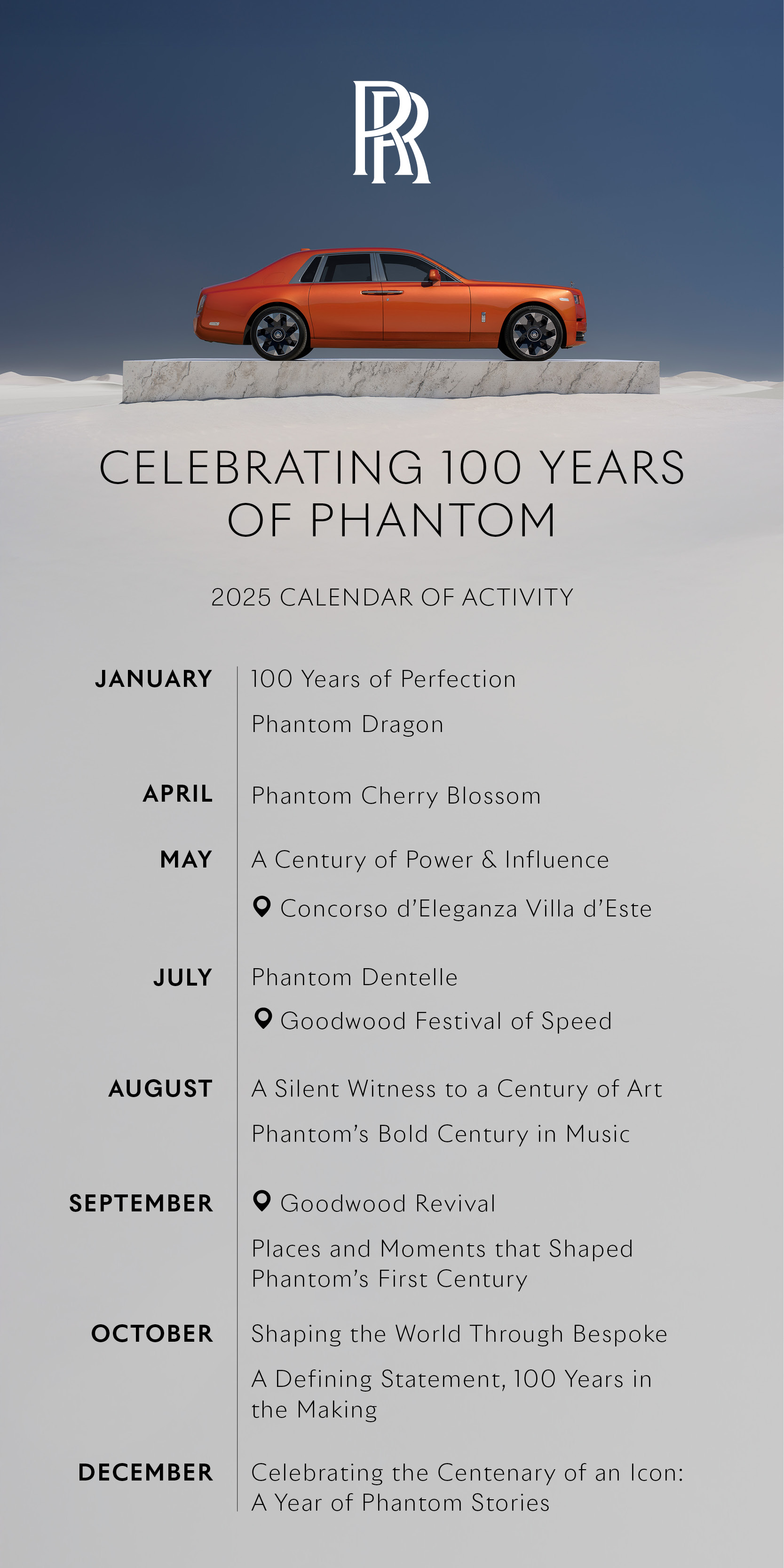 - 8 October: Shaping the World Through Bespoke – Phantom is the ultimate canvas for expression, as it has been for the last 100 years – this story explores some of the most extraordinary Phantom commissions in history.