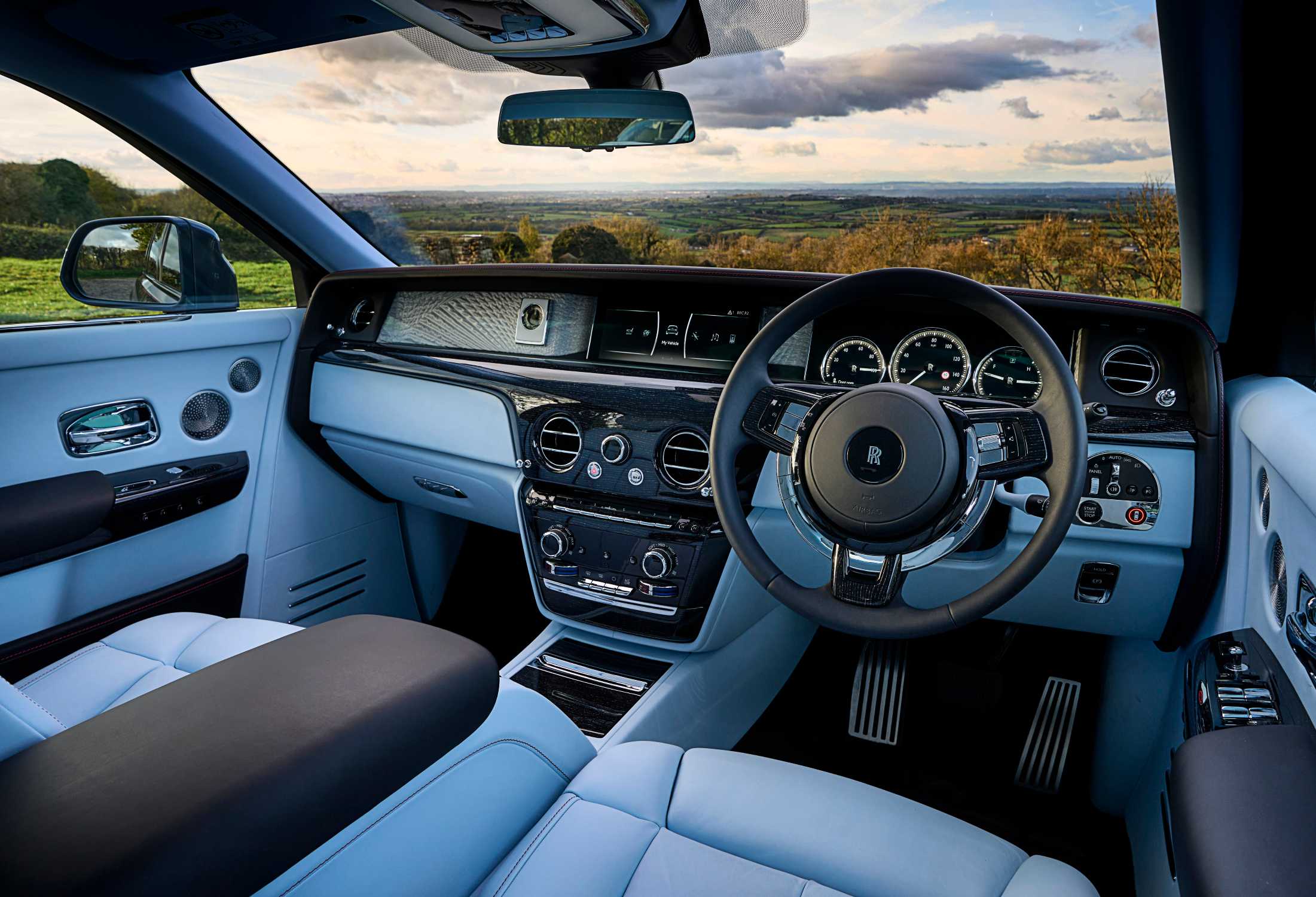 PHANTOM CENTENARY PRIVATE COLLECTION - FEATURING THE MOST INTRICATE WOODWORK EVER CREATED FOR A ROLLS-ROYCE. DEVELOPED OVER A YEAR AND RENDERED IN STAINED BLACKWOOD, THE DOOR PANELS DEPICT PHANTOM’S MOST SIGNIFICANT AND FORMATIVE JOURNEYS. WITHIN EACH COMPOSITION, GEOGRAPHICAL MAPS, WINDING ROUTES, SWEEPING LANDSCAPES, FLORAL ELEMENTS, AND DEPICTIONS OF EXPERIMENTAL MOTOR CARS INTERSECT TO FORM AN ARTWORK ALIVE WITH PHANTOM’S HERITAGE.