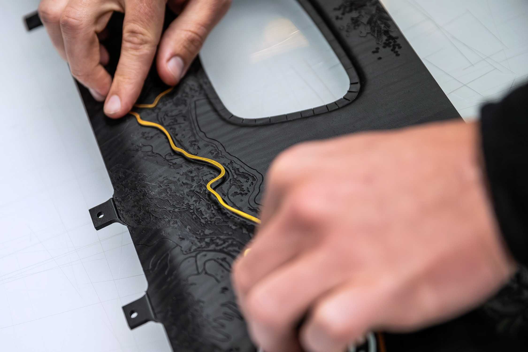 PHANTOM CENTENARY PRIVATE COLLECTION - THE LEFT-HAND SIDE DOOR PORTRAYS THE COASTLINE OF LE RAYOL-CANADEL-SUR-MER, WHERE SIR HENRY ROYCE SPENT HIS WINTERS. IT ALSO RECALLS THE EPIC 4,500-MILE JOURNEY OF THE FIRST-EVER GOODWOOD-ERA PHANTOM, WHICH CROSSED THE AUSTRALIAN CONTINENT FROM PERTH